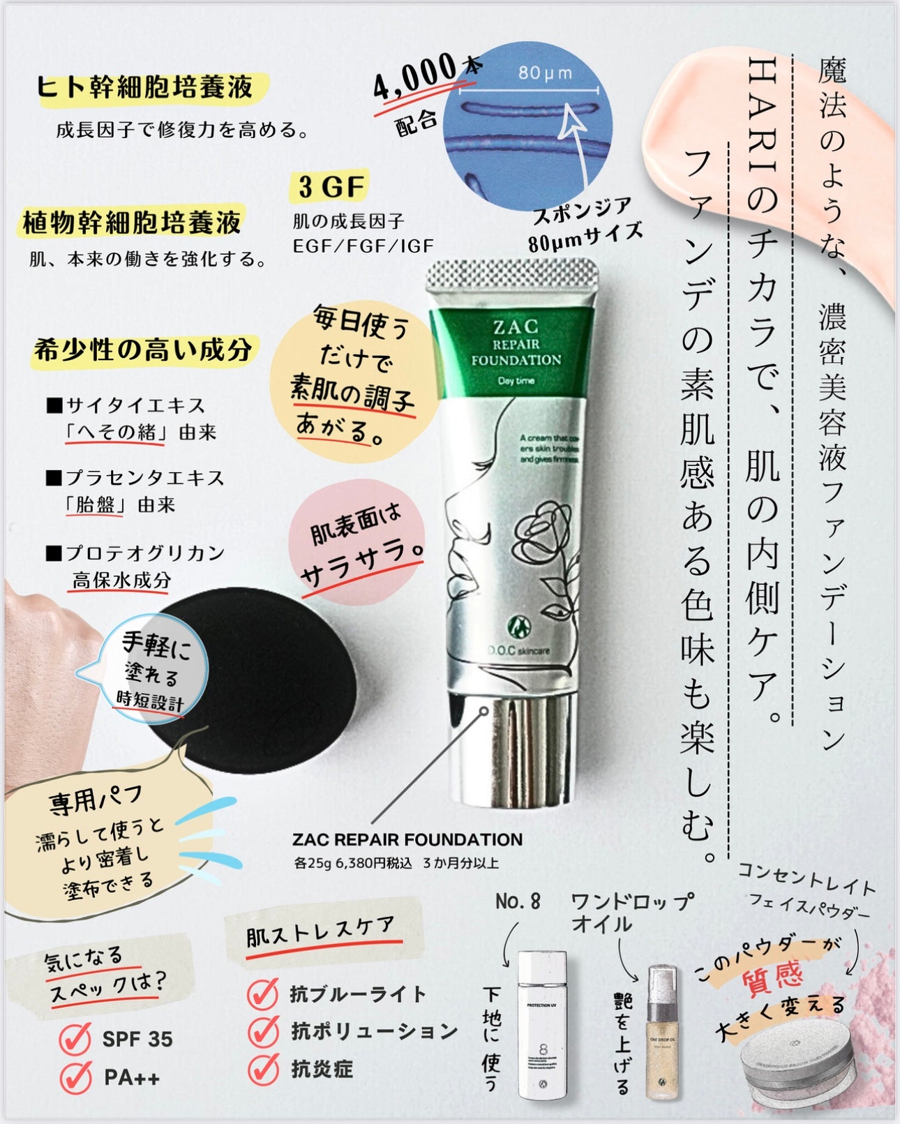 ※DOCスキンケアの104日間プログラムをされる方は、プログラム中だけでもこのファンデにすることで、HARIがしっかり入っているので、日中もずっと肌活性できる!メイクも楽しみながら、美肌をめざせるのでお勧めです✨