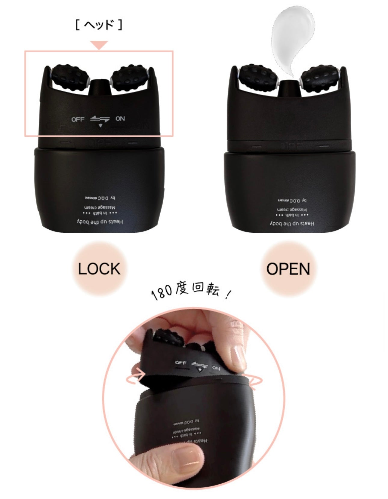 体を洗い、クリームを塗布しながらローラーで優しくコロコロマッサージします。その後、シャワーでよく洗い流してください。